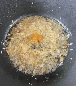 Incorporar el coñac y la miel. Subir el fuego, medio – alto, y dejar otros 3 minutos para que se evapore el alcohol.