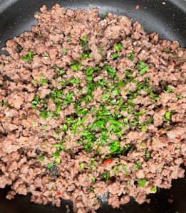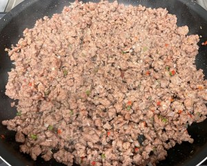 Dejar 10 minutos. Utilizar un tenedor o una cuchara para ir desmenuzando la carne y que no se formen bloques.