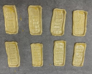 Extender la masa de hojaldre y cortar en rectángulos que sean igual de largos que los lomos de las sardinas. Hacer unas tiritas con los recortes y colocar en los bordes de los rectángulos. Pinchar en centro. Pintar con huevo. Introducir en el horno precalentado a 210º unos 5 minutos, hasta que estén dorados.