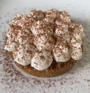 La tarta Banoffee es un pastel inglés elaborado a base de plátano, crema y dulce de leche sobre una base de galletas y mantequilla. Es muy fácil de elaborar ya que no requiere de ningún tipo de cocción.
