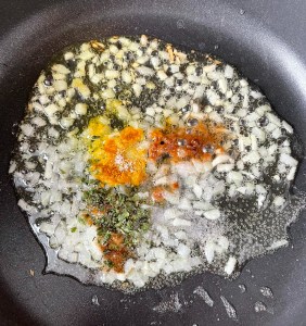 Añadir el cilantro, cúrcuma, comino, jengibre y una pizca de sal.