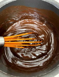 Mover con una espátula o unas varillas hasta conseguir una mezcla homogénea y brillante.