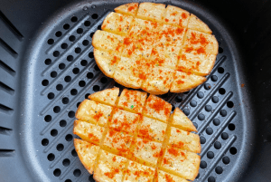 Como hacemos siempre que utilizamos la air fryer precalentar 5 minutos a 200º y untar con aceite la base. Lo mejor es darle dos pulverizaciones con un spray.