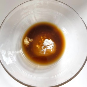 Mezclar todos los ingredientes de la salsa. Mover bien con unas varillas para que se disuelva bien la maicena.
