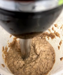 Triturar la carne con un poco de salsa para que quede una masa cremosa para rellenar los canelones.