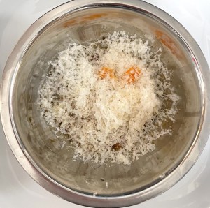 Rallar sobre las yemas el queso. La cantidad va a gusto de cada uno. Mezclar bien.