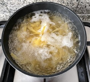 Si la mezcla de las yemas la hacéis en un bol grande mejor ya que así podremos mezclar en este mismo bol con la pasta escurrida.