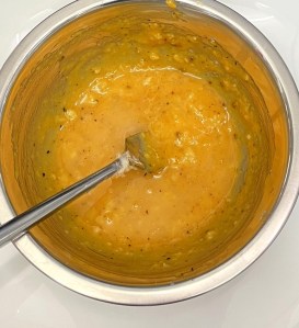 Añadir al bol donde tenemos las yemas dos cucharadas del aceite que ha soltado.