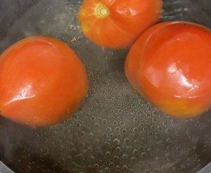 Escaldar los tomates: introducir en agua hirviendo 2 minutos.