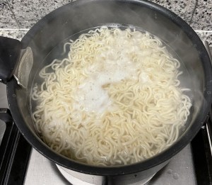 Cocer los fideos en agua hirviendo. Unos 5 minutos.