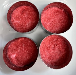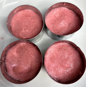 Se puede utilizar un solo molde, el mismo donde hemos hecho el bizcocho, o como en mi caso cuatro moldes individuales.