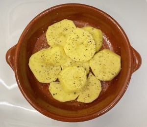 Colocar las cortadas de patata. Salpimentar.
