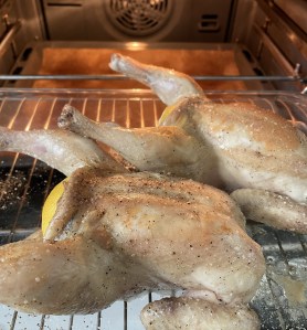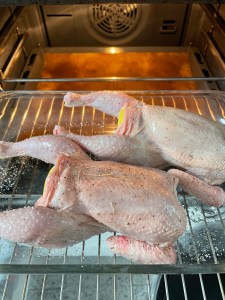A los 30 minutos sacar los pollos del horno.