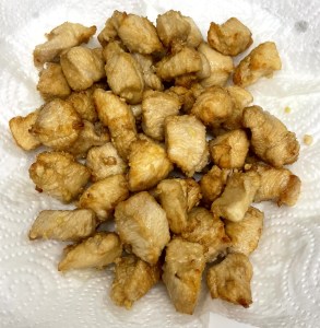 Cortar la pechuga en dados.