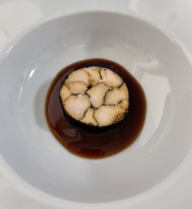 Cortar en rodajas y servir sobre una salsa hecha con jugo de lima, salsa de soja, vinagre de arroz y un toque de chili. Espolvorear con unas escamas de sal Maldom.