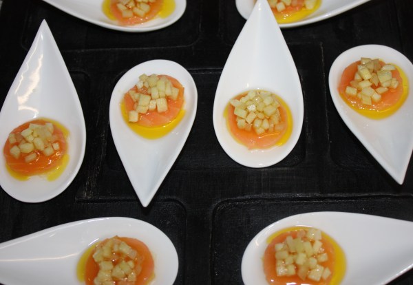 Hace tiempo os di una receta con estos mismos ingredientes, rollitos de salmón y piña con vinagreta de manzana y cebolla. Hoy en lugar de hacer rollitos vamos a montar cucharitas de aperitivo. INGREDIENTES: 1 paquete de lonchas de salmón ahumado Media piña natural 250 ml agua 125 g azúcar 1 guindilla 1/2 manzana verde... Leer más →