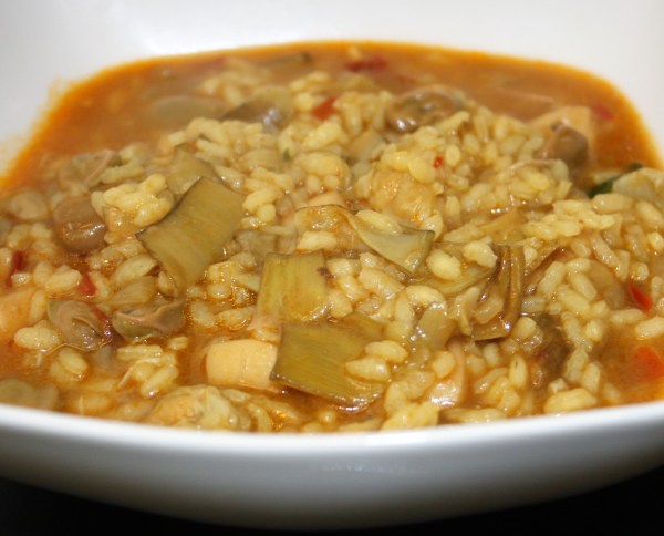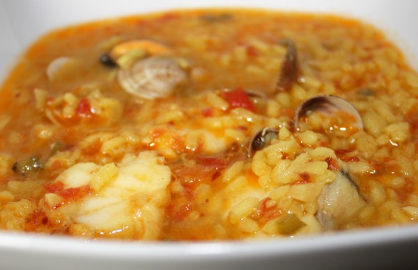 Arroz caldoso con rape, chirlas y clóchinas