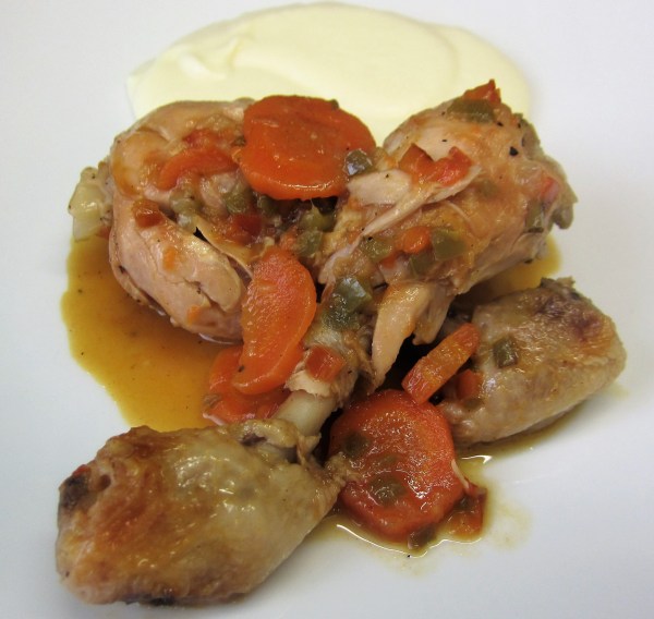 Jamoncitos de pollo guisados con leche de coco