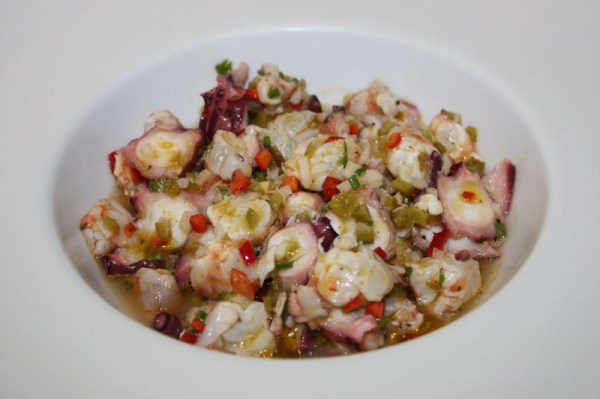 INGREDIENTES 2P: 1 pata de pulpo cocido ( lo podéis comprar en la pescadería o en los supermercados envasado al vacío ) 6 langostinos frescos 1 cucharada de pimiento rojo cortado en pequeños dados 1 cucharada de cebolla tierna a daditos 1 cucharada de pepinillos en vinagre también cortados en pequeños dados 1 lima 1... Leer más →
