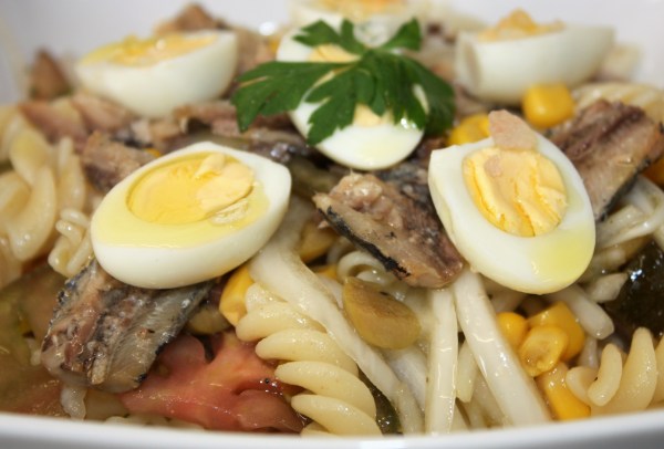Ensalada de espirales de pasta con sardinillas