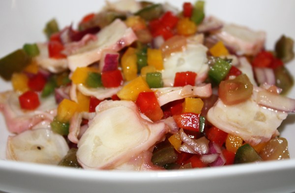 INGREDIENTES 2P: 1 pata de pulpo ya cocida ( se vende en cualquier supermercado envasada al vacío ) 1/4 pimiento rojo 1/4 pimiento verde 1/4 pimiento amarillo Media cebolla morada 1 tomate kumato 6 cucharadas de aceite virgen extra 2 cucharadas de vinagre de Jerez Media cucharadita de sal Media cucharadita de pimienta negra recién... Leer más →