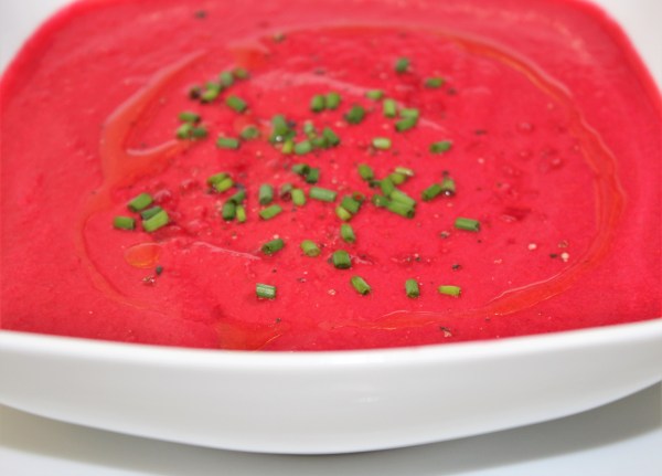 INGREDIENTES 2P: 1 remolacha cocida 3 de tomates en rama 1 ajo Medio pimiento verde italiano Medio yogur griego 1 cucharada de vinagre de Jerez 2 cucharadas de aceite de oliva virgen extra Sal Pimienta Cebollino Triturar la remolacha con los tomates y pimiento troceados, el ajo pelado y partido en dos, el vinagre, aceite,... Leer más →