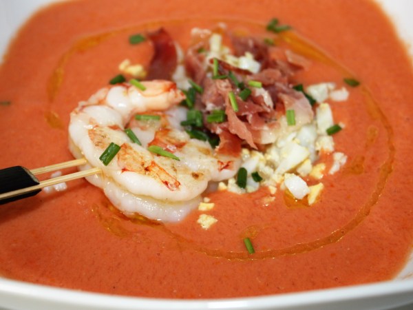 INGREDIENTE 3P: 6 gambones congelados pelados ½ kg de tomates en rama ( unos 6, depende del tamaño ) ½ pimiento verde italiano 1 ajo 1 huevo cocido 2 cucharadas de vinagre de Jerez 3 cucharadas de aceite de oliva virgen extra 2 cucharadas de aceite de oliva 0,4º Media cucharadita de sal y unas... Leer más →
