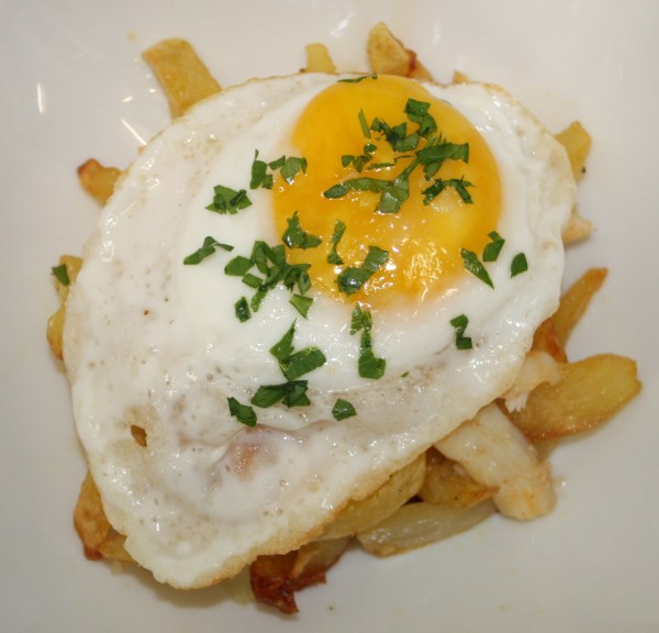 Huevos rotos con bacalao