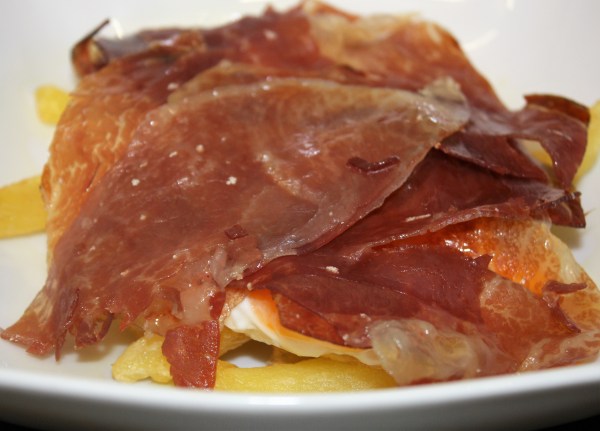 INGREDIENTES POR PERSONA: 1 patata blanca de unos 200 g 2 huevos M o L 2 cortadas de jamón Una pizca de sal 6 cucharadas de aceite para freír los huevos Pelar las patatas. Cortarlas en bastones y ponerlas un rato a remojo, de este modo eliminarán parte de el almidón. Escurrir bien las patatas... Leer más →