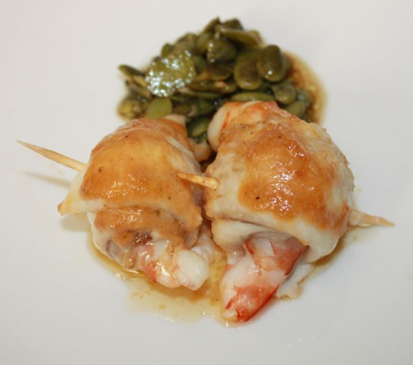 INGREDIENTES 4 ROLLITOS: 1 lenguado grande 2 langostinos 1 cebolla tierna 1 ajo 1 tomate rojo Habitas 3 cucharadas de aceite de oliva 0,4º Sal Pimienta negra recién molida Una cucharadita de azúcar 3 cucharadas de vino blanco 3 cucharadas de nata 1 cucharada de AOVE ( aceite de oliva virgen extra ) 1 cucharada... Leer más →