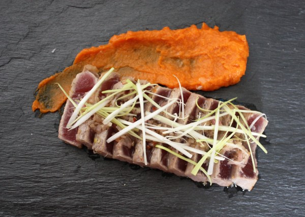 El tataki es una forma de preparar la carne o el pescado en la cocina japonesa. La carne o el pescado se maceran y posteriormente se marcan en una sartén bien caliente. Deben quedar crudos por dentro. Se cortan con la técnica del sashimi. La más sencilla y popular es el corte plano. Basta con hacer cortes perpendiculares para obtener lonchas de 1 cm de grosor.... Leer más →