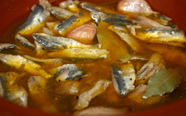 INGREDIENTES: 620g sardinas 150ml aceite 0,4º 150ml vinagre de jerez 200ml de agua (un vaso) 3 ajos 3 hojas de laurel 1 cucharada de pimentón dulce 15 bolas de pimienta negra 1 rama de tomillo Una cucharadita de sal Sacar los lomos de las sardinas: primero cortar la cabeza, eliminar las tripas y por último... Leer más →