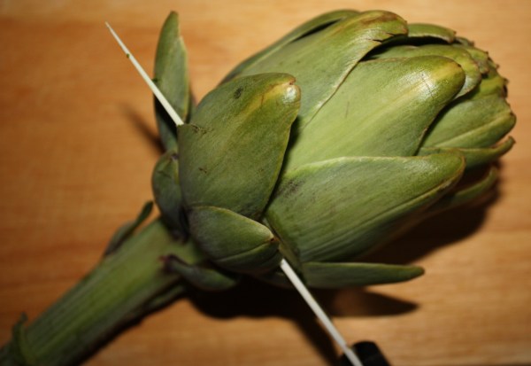 Para pelar las alcachofas: Primero cortamos la parte inferior. Seguidamente eliminamos las hojas exteriores que son muy duras, dejando solo el corazón, y cortamos la parte superior. Partimos en dos e inmediatamente frotamos con medio limón para que no se nos pongan negras. Eliminamos los pelos que hay en el centro del corazón.