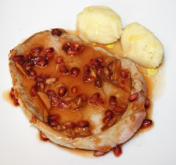 Filetes de ternera blanca con salsa de cítricos y granada