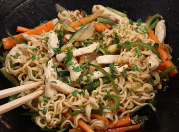 INGREDIENTES 1P: Media de pechuga de pollo deshuesada ( unos 85 g ) 70 g de noodles 1/3 calabacín Media cebolleta pequeña 1/3 pimiento verde italiano Media zanahoria Perejil 15 cacahuetes fritos y pelados 3 cucharadas de salsa de soja 1 cucharadita de jengibre rallado 4 cucharadas de aceite de oliva 0,4º 1 cucharadita de... Leer más →