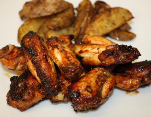 Alitas de pollo al horno con harissa y patatas cajún