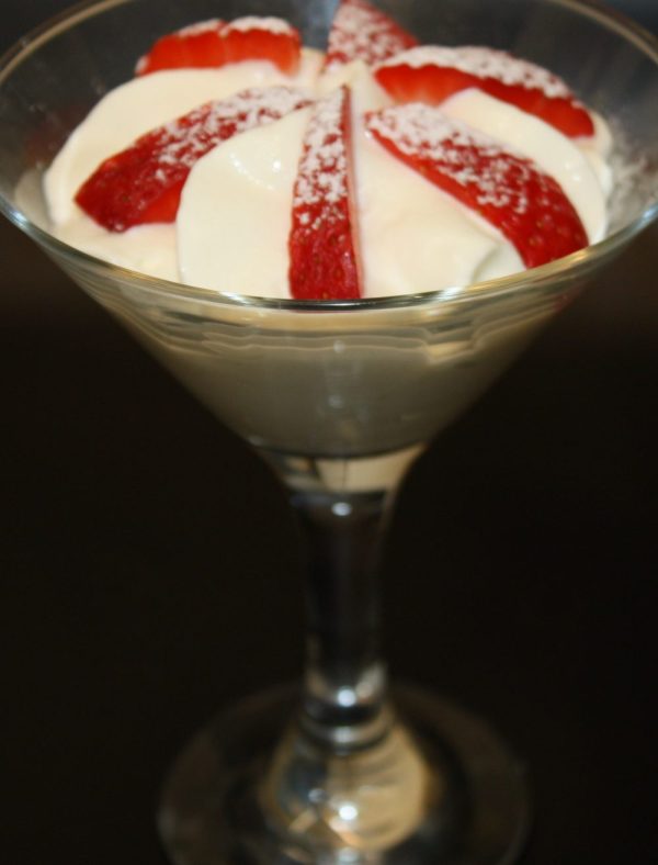 Espuma de yogur y nata con fresones