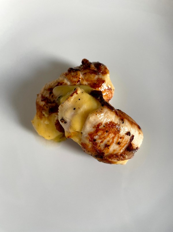 INGREDIENTES 2 ROLLITOS: 2 filetes de pechuga de pollo de corte fino Una cucharada de mayonesa Una cucharada de mostaza amarilla Una cucharada de perejil picado 2 lonchas de queso para sándwich Sal Pimienta negra recién molida 1 cucharada de aceite de oliva 0,4º Mezclar la mayonesa con la mostaza. Pintar cada filete de pechuga... Leer más →